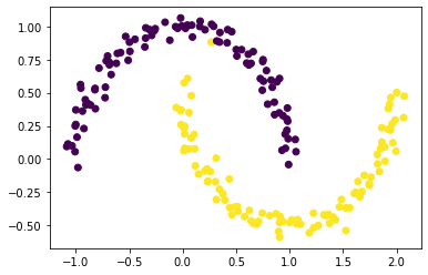 For our main focus, we will look at two ‘moon’ shaped clusters